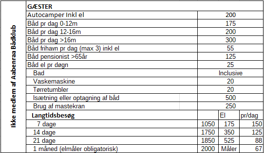 Gæstesejler - priser